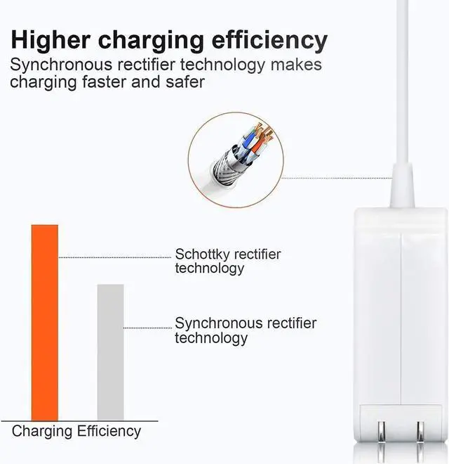 Replacement for Macbook 60 W Power Charger Portable Adapter Efficient Temperature Control 1, Uflatek Replacement Charger for MacBook is high charging efficiency up to 92% than others 87%.