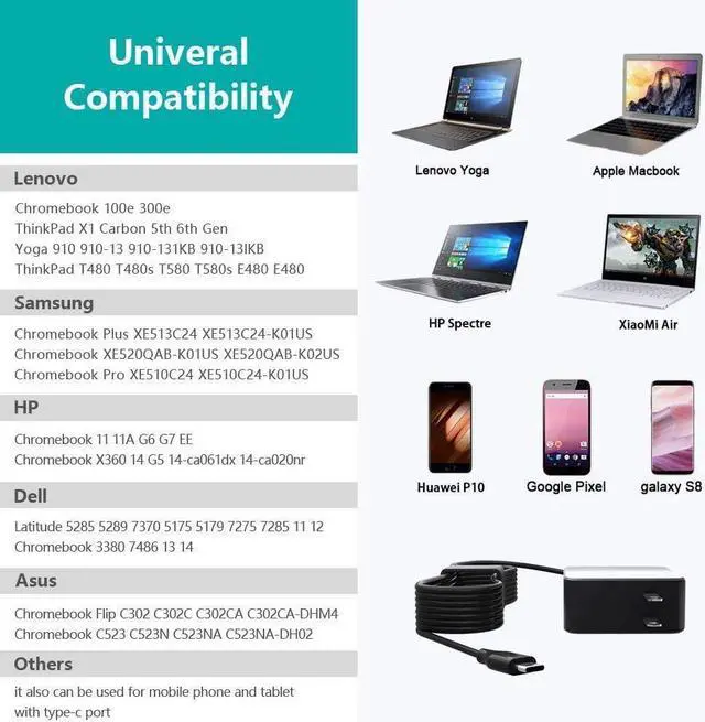 Connector Size: Type-C Tip. Please Please check your laptop size, The Laptop Charger NOT COMPATIBLE WITH Round Tip and Micro USB Connector