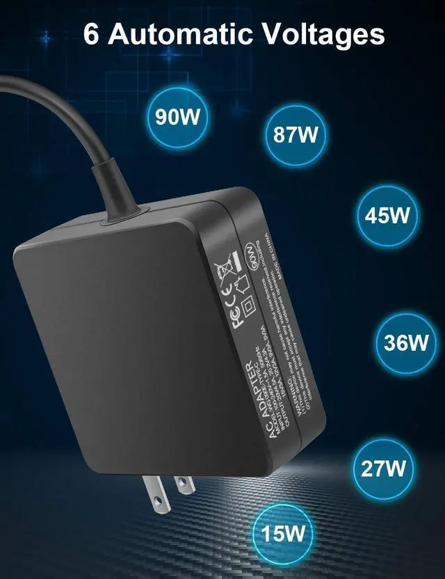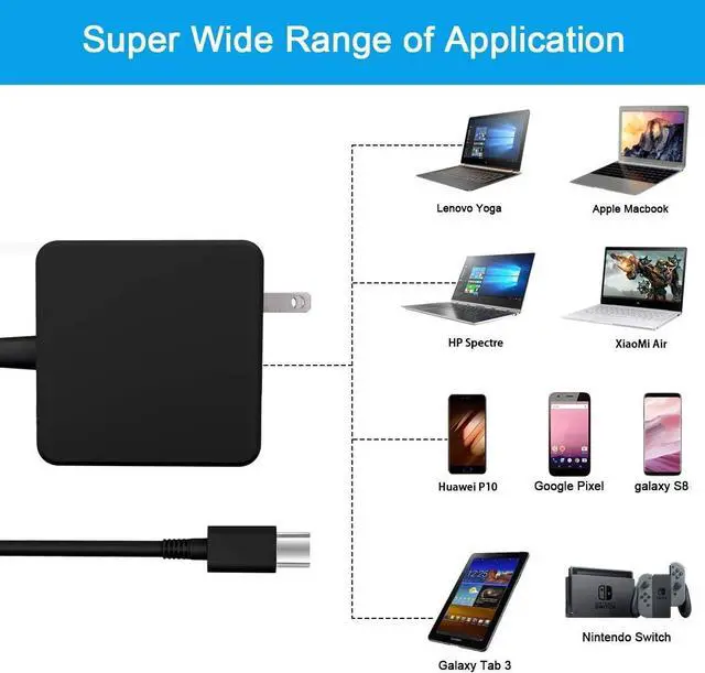 Widely CompatibleThe USB C charger is great replacement up to 90w charger for HP Spectre x360 Elite HP Envy x360 Dell XPS 13 9350 Dell XPS 15 9550 Razer Blade Stealth New MacBook Pro Lenovo Yoga 910 920 730 Thinkpad Google Pixelbook /Chromebook Pixel and more USB-C devices.