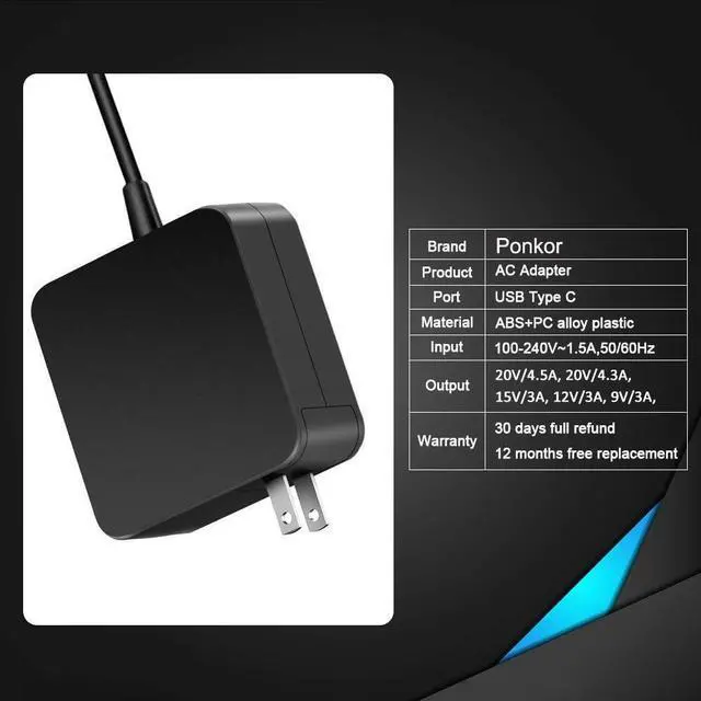 What You Get1 x USB-C power adapter(with 6ft/ 1.8 m cable), 30 days full refund guarantee, 12 months free exchange warranty and 24H x 7 friendly customer service.