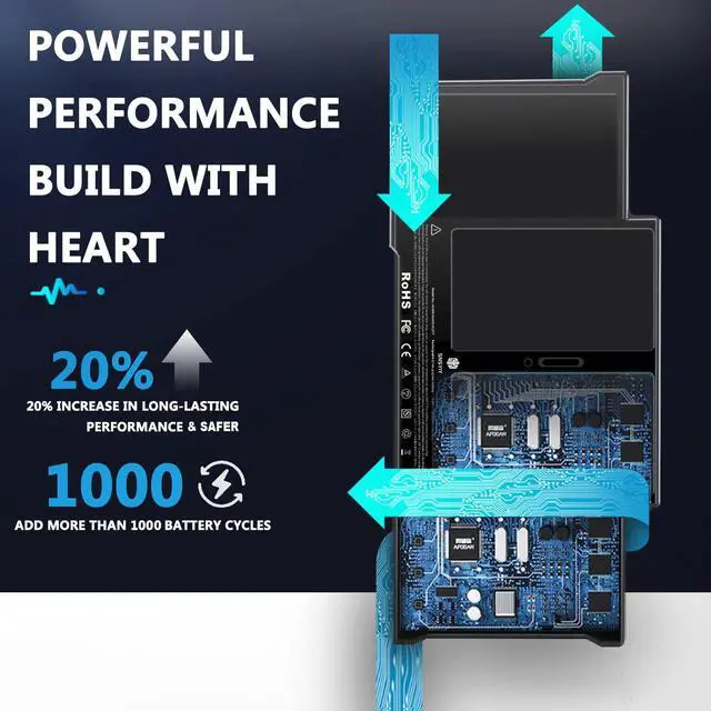 Cobalt Proportion: >98%. Upgrade chip. Up to 1500+ recharge cycles over the life of the battery. Overcharger and Discharger Circuit Protection, Ensure fast charges and low power consumption, UL-/CE-/FCC-/RoHS-Certified for safety