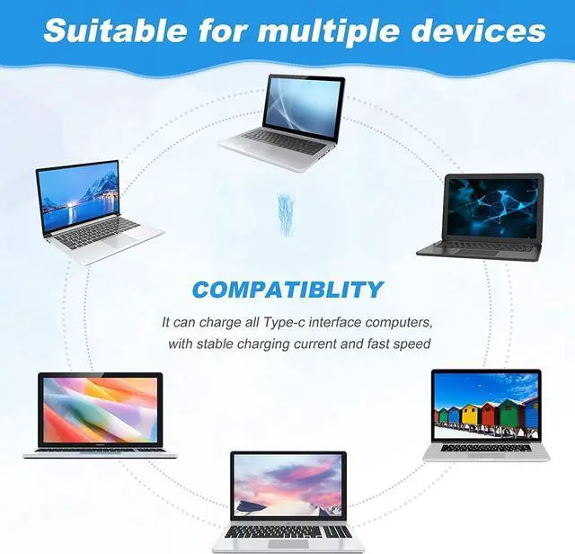 C laptop like: Pavilion, Envy, Spectre, Chromebook. Fit for Dell 45w 65w USB C laptop. Comaptible with Asus type C laptop. Fit for Samsung laptop, for Google laptop