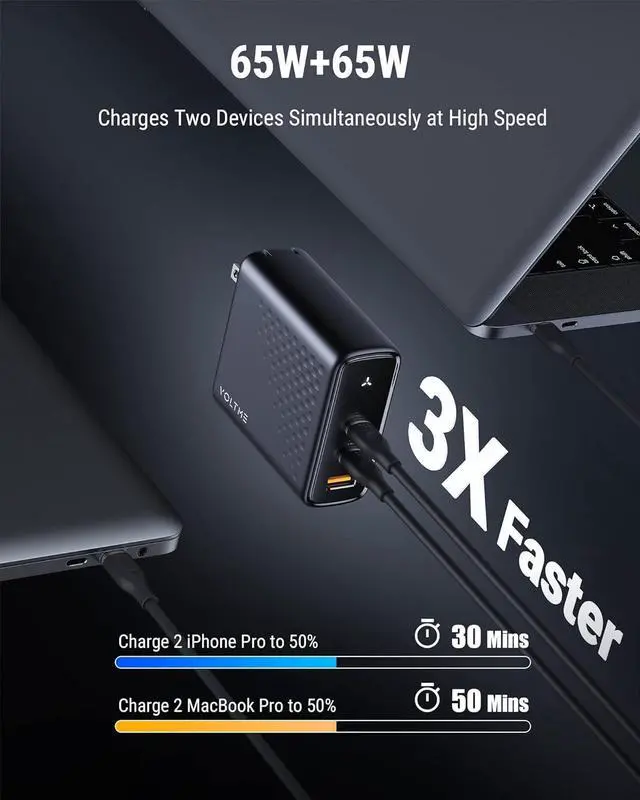 Laptop Ultimate Fast Charging: Charge the MacBook Pro 16" to 56% in 30 minutes. Charge your tablets and phones up to 3x faster