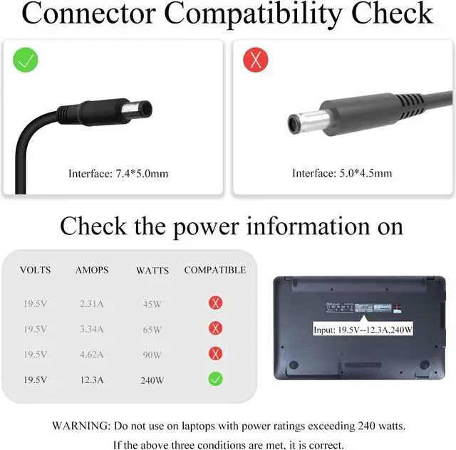 Output: 19.5V 12.3A 240W (Compatible with 19.5V 9.23A 180W)