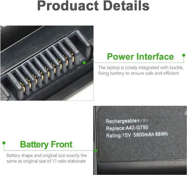 Compatible original Battery Code: A32-G750, A42G750, 0B110-00200000, 0B110-00200000M.