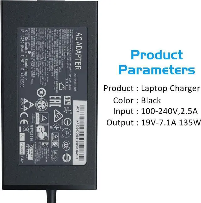 Fit for Nitro 5 N18C3 AN515-51 AN515-41 AN515-53 AN515-52 AN515-43 AN515-54 AN517-51 N18C4 AN515-55-53AG AN515-44-R99Q AN515-55-52KW LaptopOutput: 19V 7.1A 135W