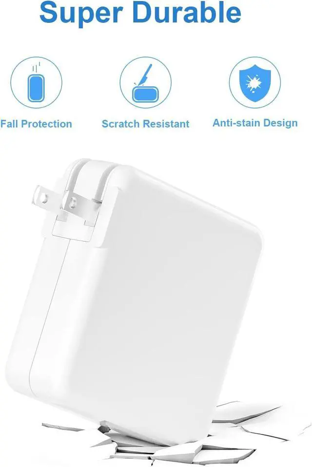The charging power will be automatically identified and converted according to your device. Safety and ReliableOur 116W MacBook laptop charger are made with the highest quality shell and the most advanced smart chip. The smart chip can provide safeguarding against over-current over-voltage overload temperature protection short-circuit protection and auto recovery. So you don't need to worry about safety. Advanced Charging TechnologyUsing PD 3.0 charging technology.