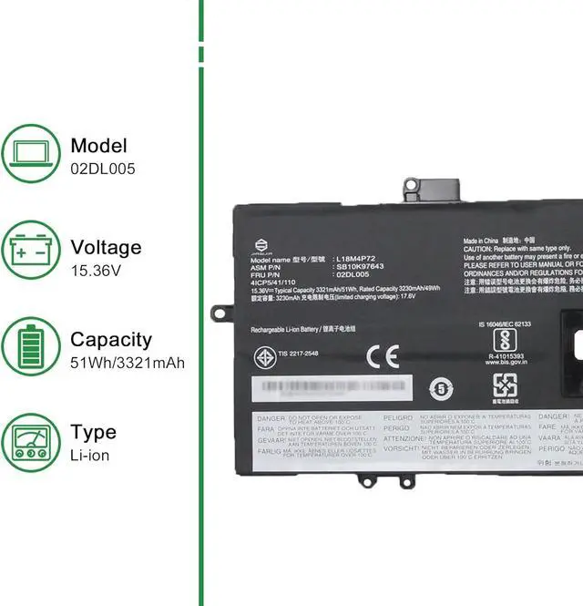 Replacement for Part Number: 02DL005 L18M4P72 SB10K97643 02DL006 L18C4P71 SB10K97644 02DL004 L18L4P71 SB10K97642 5B10W13930 5B10W13931 5B10W13932.