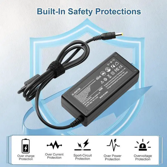 Powerful and Efficient: With an input voltage range of 100-240V ~ 50/60Hz, and an output of 19V 3.42A 65W, this charger delivers the optimal power your Aspire 5 series, Aspire 3 series needs while being energy-efficient.