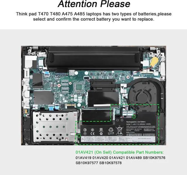 Replacement Battery Part Numbers: 01AV419 01AV420 01AV421 01AV489 SB10K97576 SB10K97577 SB10K97578 3ICP6/38/64