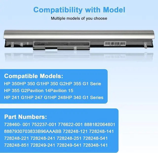 Stability: LA03 LA04 Laptop Battery Replacement battery for HP offers 600+ recharge cycles over life of battery. Our Replacement Laptop Battery 100% Compatibility with the originals. Complying with the CE/FCC/ROHS Certified Standard
