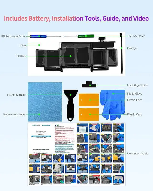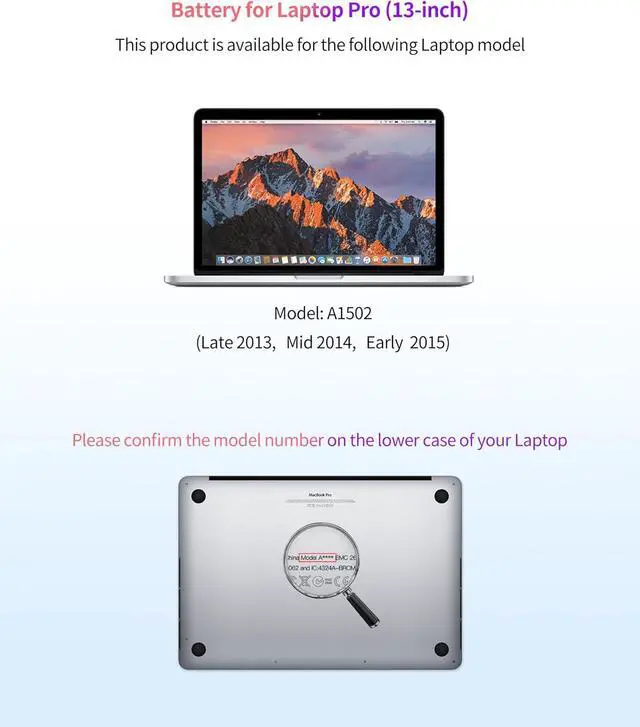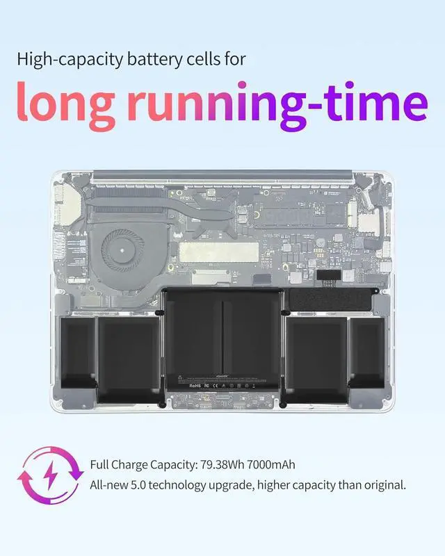 Charge Capacity: 79.4W h 7000mAh, Voltage: 11.34V, Compatible with laptop 13-inch A1502(Late 2013, Mid 2014, Early 2015).