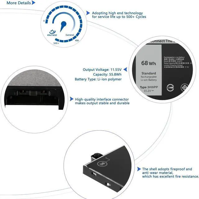Replace Part Number: 3HWPP 10X1J N2NLL 1VY7F 3PCVM 3YNXM 401D9 JG75F T6DC2 YPVX3 03HWPP 01VY7F 451-BCNS 4ICP6/56/77.