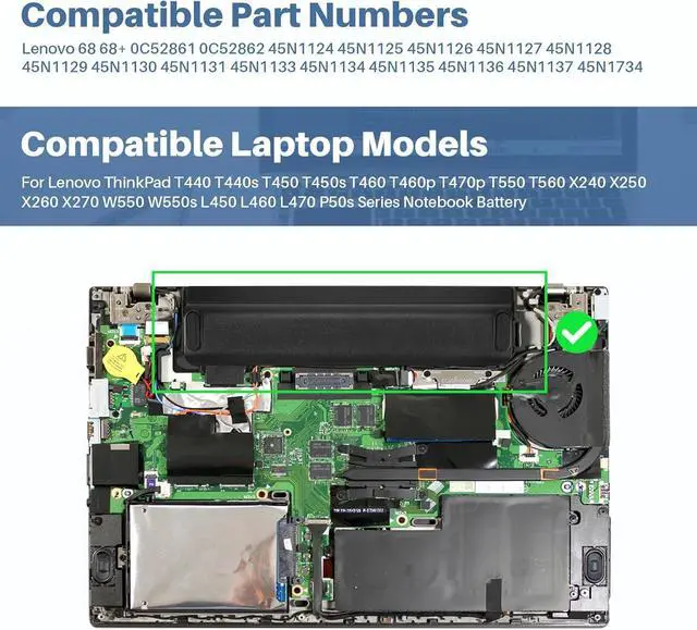 Compatible Laptop Models: L enovo ThinkPad T440 T440s T450 T450s T460 T460p T470p T550 T560 X240 X250 X260 X270 W550 W550s L450 L460 L470 P50s Series Notebook Battery.