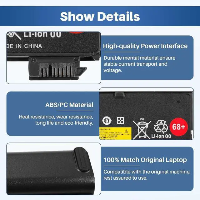 Compatible Part Number: L enovo 68 68+ 0C52861 0C52862 45N1124 45N1125 45N1126 45N1127 45N1128 45N1129 45N1130 45N1131 45N1133 45N1134 45N1135 45N1136 45N1137 45N1734 Laptop Battery.