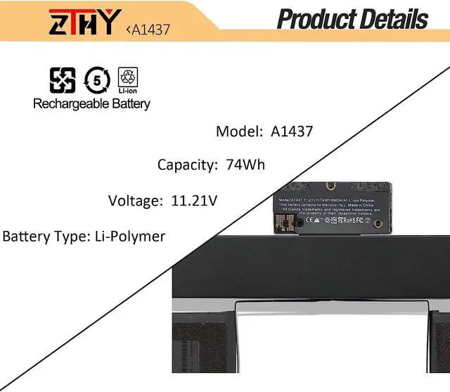 Compatible Part Number: MacBook Pro 13 13.3 inch A1437 A1425 (EMC 2672) A1425 (EMC 2557) 020-7851-A 020-7652-A Notebook Battery
