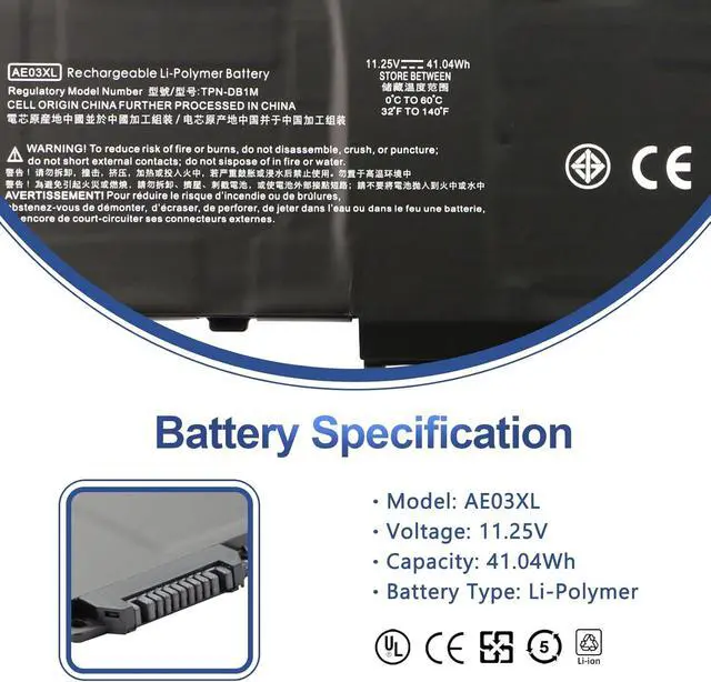 Compatible Part Number: Compatible with AE03XL AE03041XL AE03041XL-PL HSTNN-AB1B HSTNN-OB3E HSTNN-WB0D 78H64AV 78U71AV N21969-005 N20951-171 N20951-1B1 N20951-2D1 N20951-2E1 N20951-AC1 N20951-B71 N20951-CC1 TPN-IB0R TPN-IB0S TPN-DB1N TPN-DB1M.
