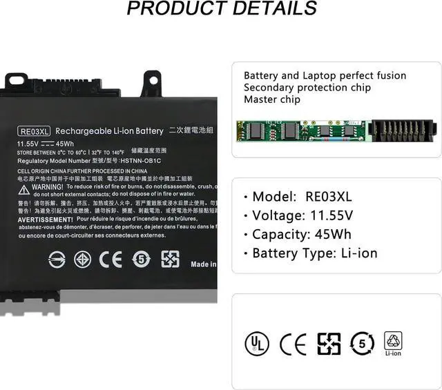 Compatible Part Number: RE03XL HSTNN-0B1C HSTNN-DB9A HSTNN-OB1C HSTNN-UB7R L32407-2B1 L32407-2C1 L32407-541 L32407-AC1 L32656-002 L32656-005