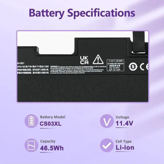 LONG-LASTING BATTERY LIFE: With 11.4V capacity ( 46Wh ), the ( CS03XL ) battery ensures all-day power for your laptops in a factory-fresh, never-used battery pack designed for maximum performance.