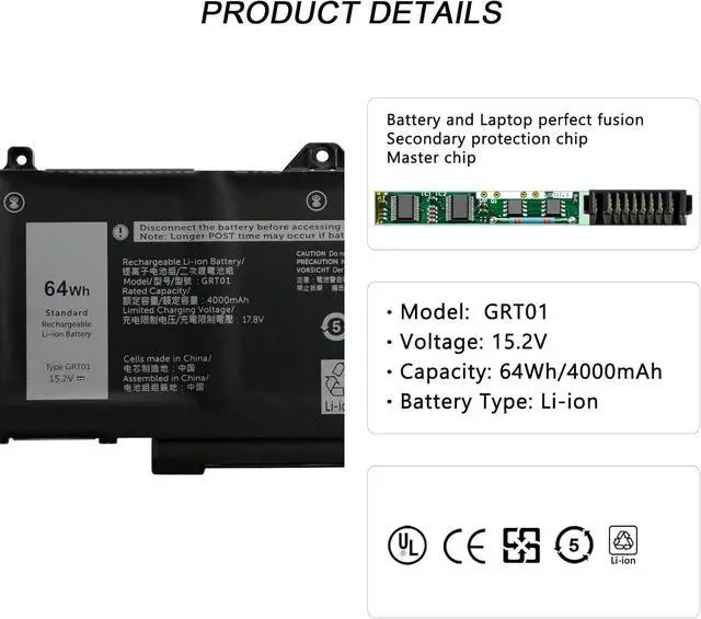 R05P0 05RGW(Note: The length of GRT01 battery is shorter than 9JRV0 battery, and their interfaces are different, so they are not compatible with each other. we suggest you to open the back cover of your laptop and make sure that the battery model you need is GRT01. )