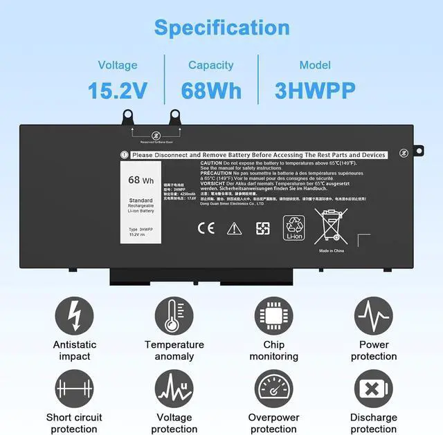 Stability: 3HWPP Laptop Battery Replacement battery for Dell offers 1000+ over life of battery.