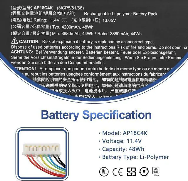 Compatible Laptop Models: Replacement for Acer Aspire 3 A315-42 A315-42G Series, Acer Aspire 3 A315-54 Series, Acer Aspire 5 A515-43 A515-43G Series, Acer Aspire 5 A515-44 A515-44G Series, Acer Aspire 5 A515-54 A515-54G Series, Acer Aspire 5 A514-52 A514-52G Series, Acer Spin 3 SP313-51N Series, Acer Spin 3 SP314-54N Series, Acer Swift 3 S40-51 S40-51-53M8 S40-51-54WR Series, Acer TravelMate P2 TMP214-53 Series.