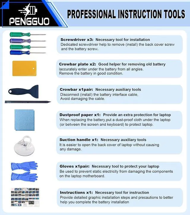 Package: 1pcs - Replacement battery for macbook pro A1990, 1pcs - Installation Instructions, Professional necessary installation tools