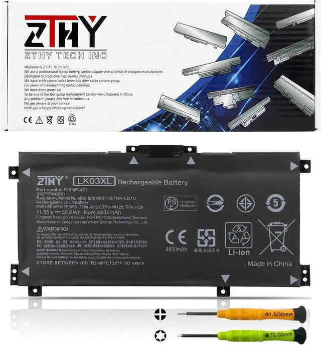 • Replace Part Number: 916368-421, 916368-541, 916814-855, HSTNN-LB7U, HSTNN-LB8J, HSTNN-UB71, HSTNN-UB7I, L08855-856, L08934-1B1, L09049-1B1, L09280-855, L09281-855, L09911-141, L09911-421, LK03048XL, LK03055XL, LK03XL, LKO3XL, TPN-I129, TPN-W127, TPN-W128