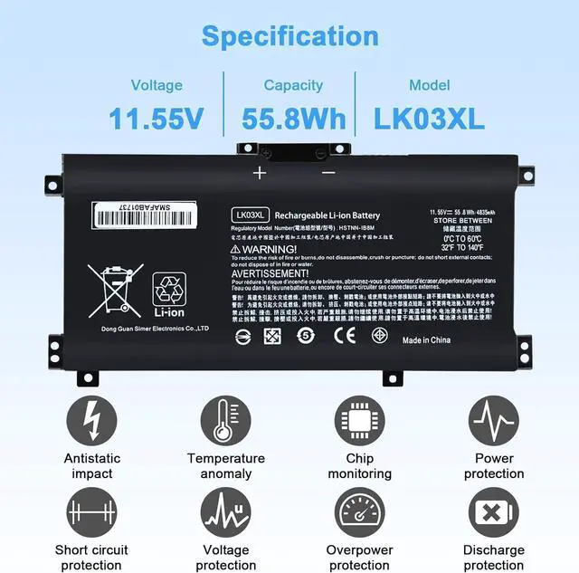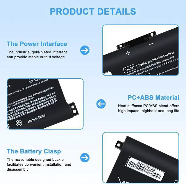 Compatible Part Number: Compatible with LK03XL LKO3XL LK03048XL LK03055XL LK03052XL 916368-421 916368-541 916814-855 HSTNN-LB7U HSTNN-LB8J HSTNN-UB71 HSTNN-UB7I HSTNN-IB8N HSTNN-IB8V L08855-856 L08934-1B1 L09281-855 L08934-2C1 L09049-1B1 L09280-855 L09911-141 L09911-421 L09911-1B1 TPN-W127 TPN-W128 TPN-I129