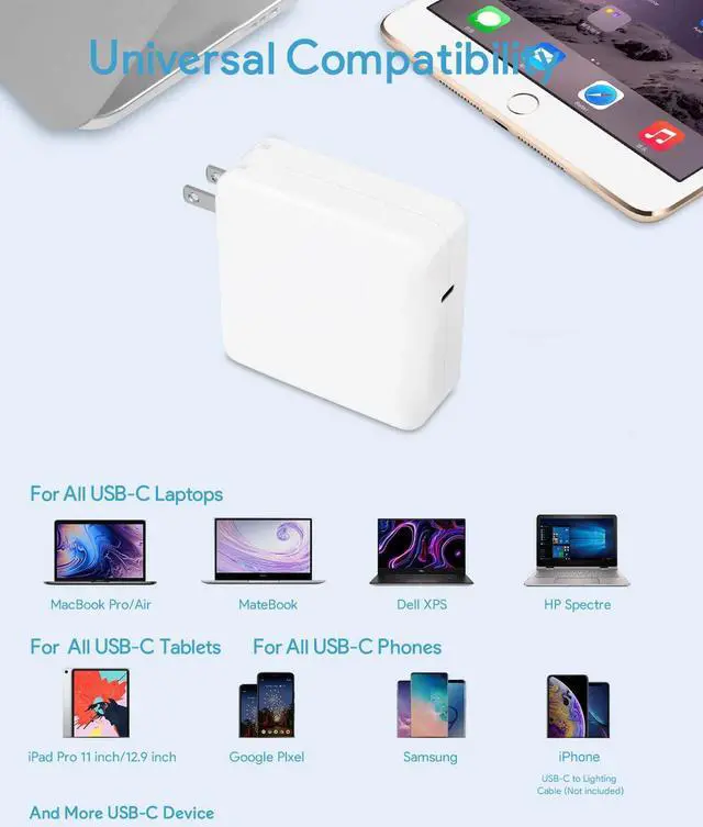 Compatible Models: MacBook Pro 13/14 Inch (2016-2023) 12 Inch 2015 (A1706 A1708 A1707 A1534) Macbook Air 13 inch 2018 2019 2020 2022 2023). You can use this adapter instead of 61W 30W 29W adapter for lower wattage different MacBook/MacBook Pro modelSpecification-