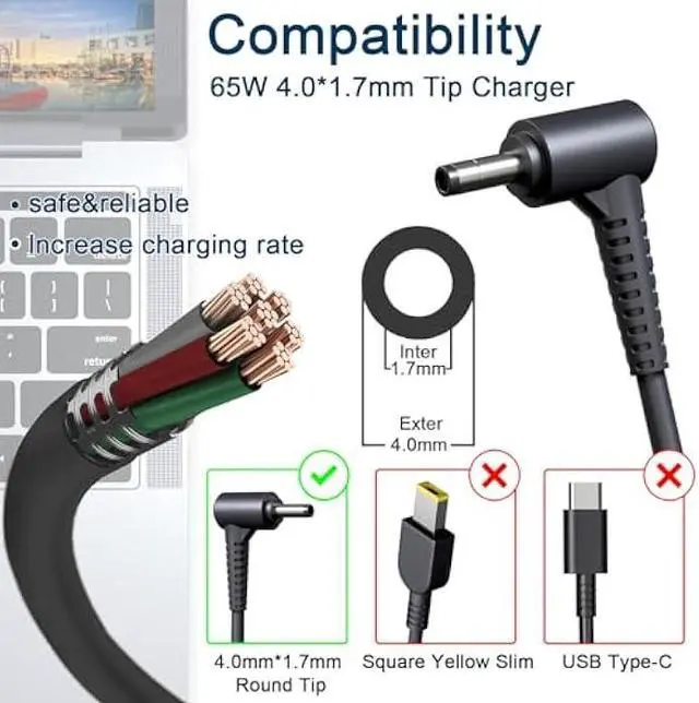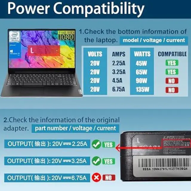 Product DescriptionOutput & Wattage: 20V- 3.25A 65W (Works with 20V- 2.25A 45W laptop)