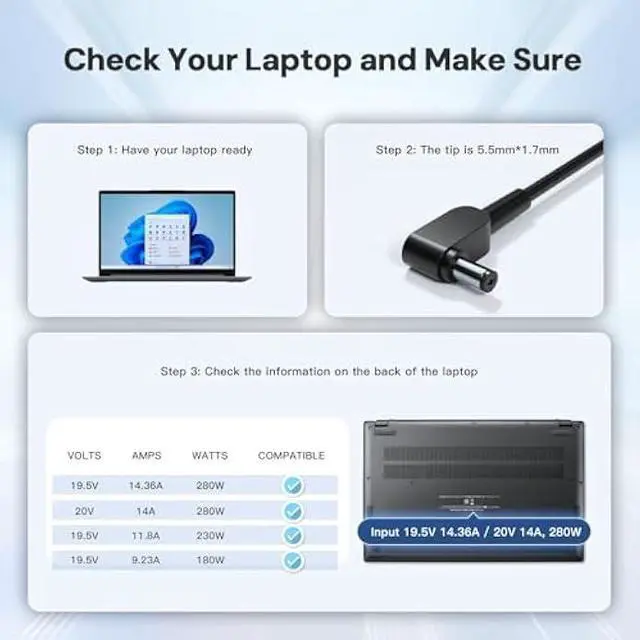 High Power Performance: Delivers 280W output ( 19.5V 14.36A ) for faster, more stable charging of Acer Predator and Nitro gaming laptops
