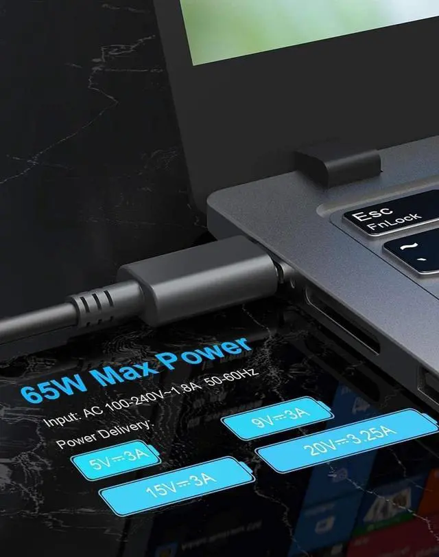 65W USB TYPE C Power Delivery - intelligent automatic output of appropriate power supply for fast charging compatible with Tablet Computers And More USB C-Port devices :