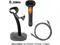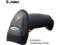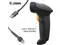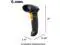 • Black handheld corded barcode reader scans and decodes linear 1D barcodes, including GS1 DataBar and RSS codes