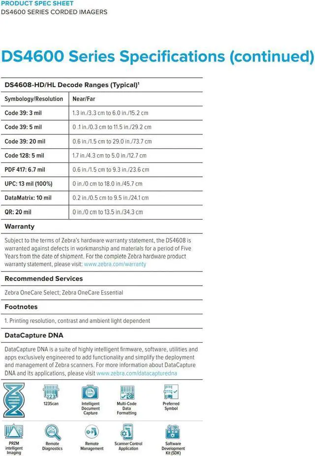 The increased efficiency shrinks lines and keeps customers coming back again and again. And our unique DataCapture DNA and industry-preferred management tools make it easier than ever to integrate, deploy and manage your scanners. The DS4608-more data capture versatility, more range and more innovation. Resets the bar for versatility and performance Capture it all with the DS4608 No matter what kind of data you need to capture in your store, there is a DS4608 model that is ready for the job. Scan 1D and 2D barcodes, whether they're printed on a label or displayed on a phone.