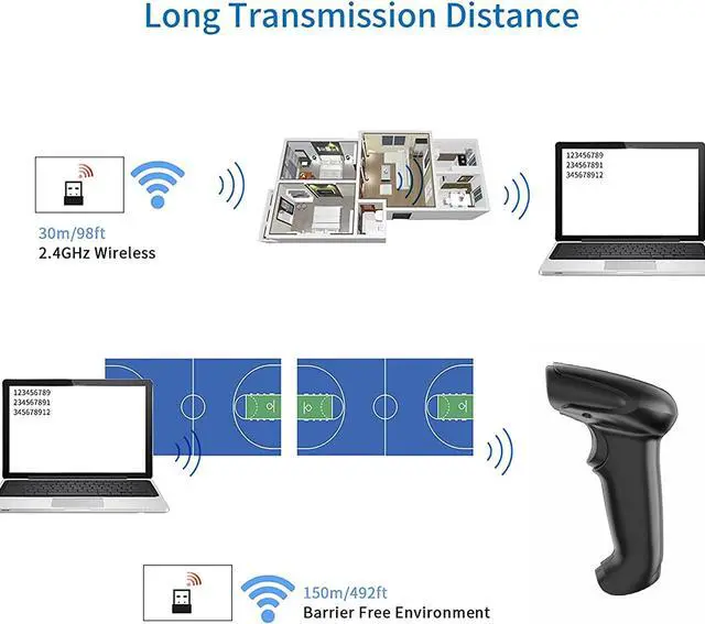Long Transmission Wireless Barcode Scanner. Long gone are the days of dealing with multiple cables going everywhere.