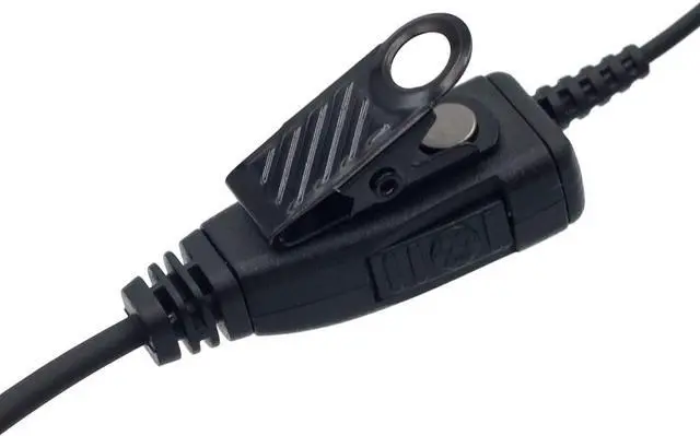 Metal clip on the PTT back clips securely onto lapel, collar or tie. Users are easy to adjust