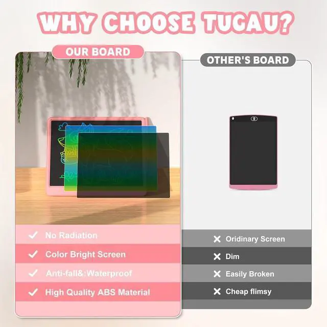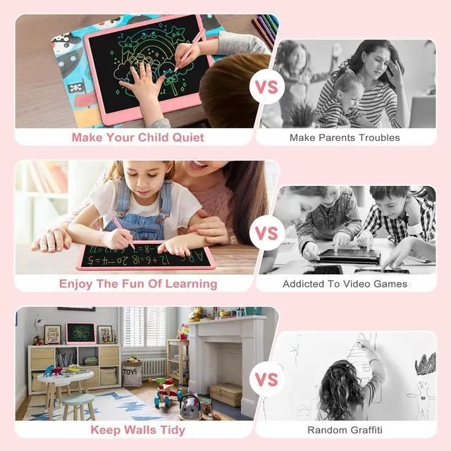 Multi-purposeThis innovatively designed writing pad is not only suitable for children's daily drawing doodles, taking notes, calculating, practicing calligraphy and sketching. Adults can also use it to write to-do lists, shopping lists, short memos, recipes or leave messages for friends or family. Besides, Teachers can use it to demonstrate to students at school. It can even help deaf-mute people with their communication needs.
