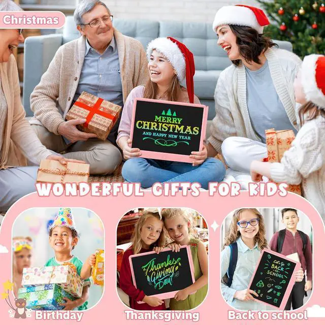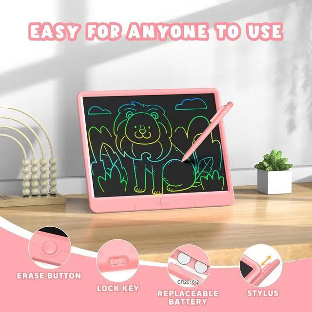 Best Travel Toy & Gifts for KidsThis kids drawing pad adopts durable ABS material, which makes it have good shock resistance and drop resistance. This kids drawing tablet is only 325g weight and only 0.51 '' thick, can easily fit into a school bags, handbags or travel bags for easy portability. This is a great educational learning toy gift for kids! It's the perfect gift for back-to-school, birthdays, Thanksgiving, Christmas, New Year or any occasion! Kids will love it.
