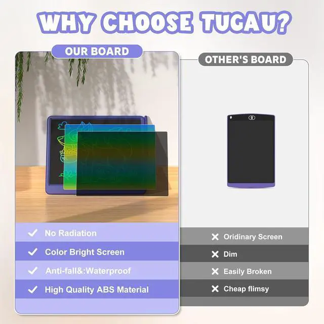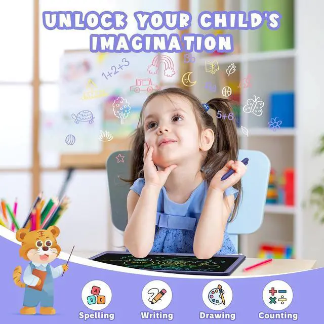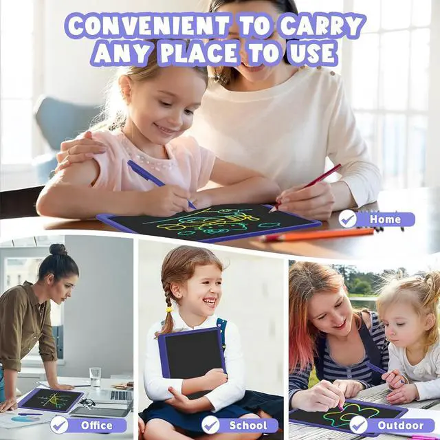 Best Travel Toy & Gifts for KidsThis kids drawing pad adopts durable ABS material, which makes it have good shock resistance and drop resistance. This kids drawing tablet is only 325g weight and only 0.51 '' thick, can easily fit into a school bags, handbags or travel bags for easy portability. This is a great educational learning toy gift for kids! It's the perfect gift for back-to-school, birthdays, Thanksgiving, Christmas, New Year or any occasion! Kids will love it.