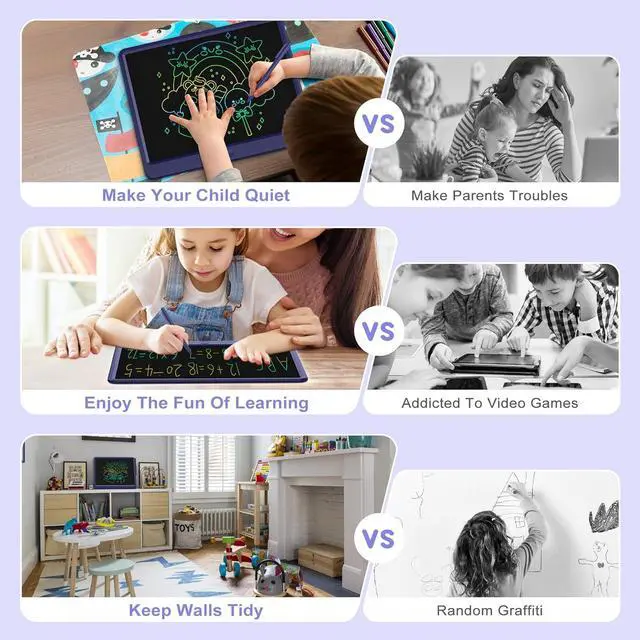 Multi-purposeThis innovatively designed writing pad is not only suitable for children's daily drawing doodles, taking notes, calculating, practicing calligraphy and sketching. Adults can also use it to write to-do lists, shopping lists, short memos, recipes or leave messages for friends or family. Besides, Teachers can use it to demonstrate to students at school. It can even help deaf-mute people with their communication needs.