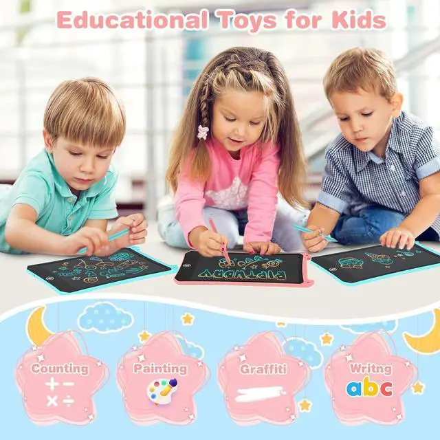 Multi-PurposeThe boards are for kids of all ages and also for you. with this LCD writing Tablet, children can enjoy painting, count the numbers, spell words at any time and place without making a mess on the ground or walls. For adult, you can write down your ideas anytime or Treat it as a message board.