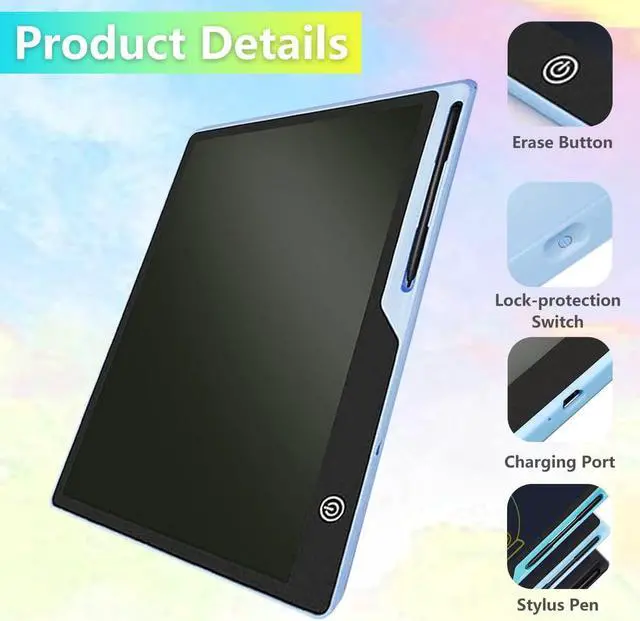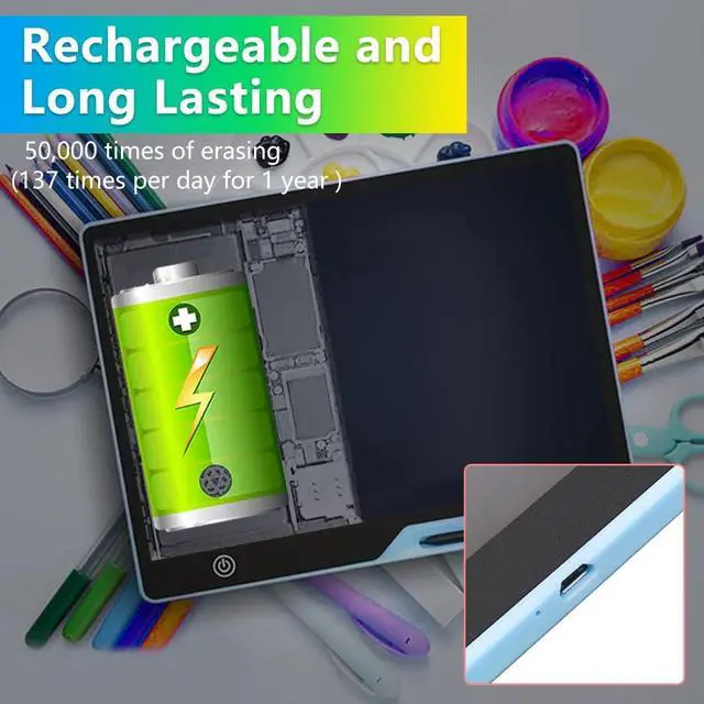 [Child Friendly Design] The lcd writing tablet for kids rechargeable is specially designed for children to use without any complicated operation. A 3-year-old beginner can easily learn how to use it. Just pick up the included pen to create freely. One-button erasing is simple and practical. Lock-protection switch prevents the painting being created from being accidentally erased.