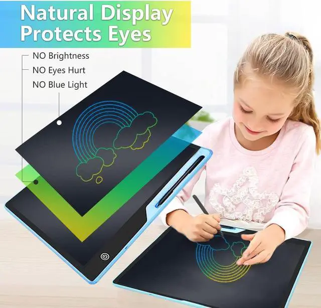 [EYE PROTECTION LCD SCREEN] The lcd drawing tablet for kids can completely avoid eye fatigue during use adopting 2023 LCD colorful screen, and shows no brightness, no blue light which this lcd drawing tablet for kids do no harm to your child's eyes.