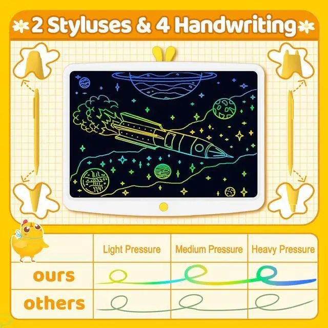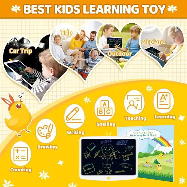 Awesome Gift for Kids: This LCD doodle pad is a wonderful educational learning toy for kids, which frees kids' imagination and creativity, help kids practice spelling, writing, counting, hands-on ability and ect. A perfect gift for 3-12 year old girls and boys on Christmas, Halloween, back to school, birthday and any other occasions.