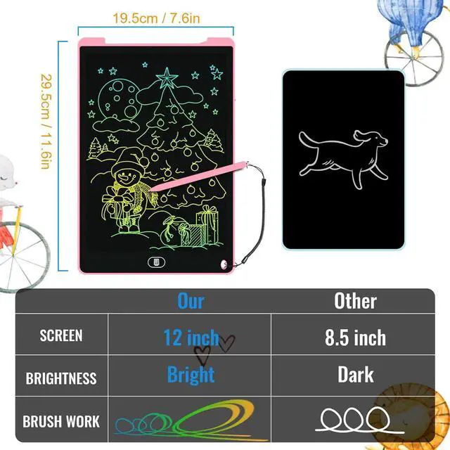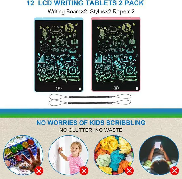 Eco-friendly & Eye Protection Built-in battery is recyclable, no need to charge or plug in. The writing board can provide about 100, 000 times of writing, avoiding the waste of paper and pencils. The graffiti board is radiation-free, blue light-free, glare-free, and safe and comfortable for long-term use. The large 12-inch panel provides enough space for graffiti and drawing experience!