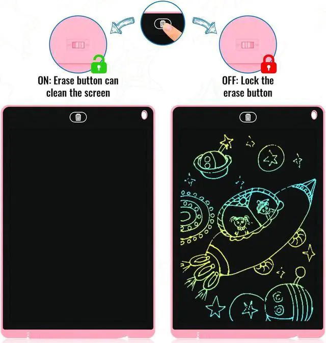 One-button Locking & Deletion Lock or delete content with just one button. Protect your creations by adding an extra lock button on the back than drawing boards on the market to prevent accidental erasure! When you are done drawing, unlock it and press the erase button at the bottom of the screen to clear all the content on the screen. Both functions are simple and practical, so even young children who are not ready to use electronic devices can get started quickly!