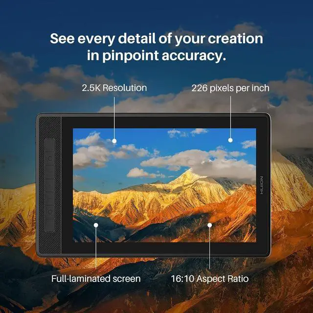 Outstanding Visuals: With 2560x1600 QHD resolution and a high pixel density of 226ppi, the Huion Kamvas Pro 13 (2.5K) digital drawing tablet will show every detail of your creation in striking clarity.