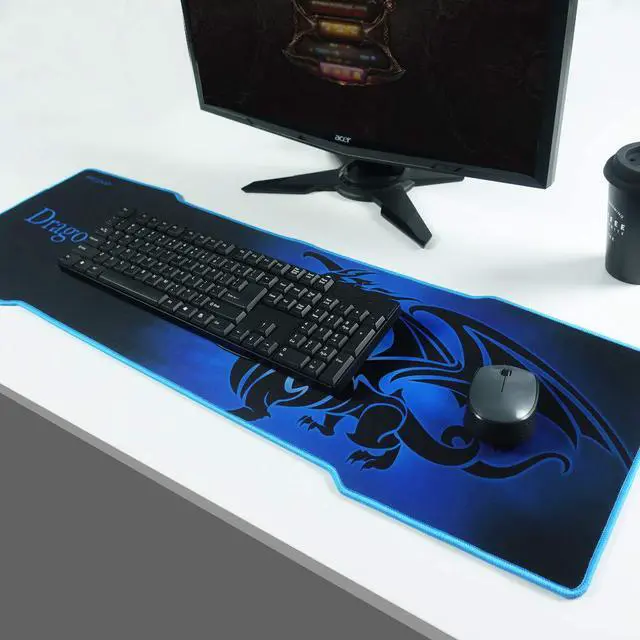 Color: Blue Taming Dragon EXCO Extended Large Gaming Mouse Pad - 420 Square Inches that give your plenty of mouse real estate and space to move with this oversized gaming mouse pad. You'll love this Thick 5mm mouse pad, At just 5mm thick they are designed to be hard on top and soft on the bottom for high flexibility and anti-curling. Everything from the top, bottom, and sides were engineered for maximum gaming accuracy and longevity. Oversized SPEED/CONTROL Surface - EXCO mouse pads have heavily textured surfaces to deliver the right amount of friction to your gaming mouse's movements. You can get pixel-precise targeting for absolute in-game accuracy. - CONTROL surface suits gamers who need absolute precision to hit targets exactly where they need to. Anti-Slip Base Mouse Pad - Bottom is made of natural processed foam rubber, which gives flexibility to adapt to desktops of different surface materials, anti-slip, high-quality and long-life design. - This natural rubber base also ensures a firm and steady grip of your desk for hardcore gaming sessions. Professional Reinforced Stitched Edges - The edges are expertly reinforced by a dense stitching process that not only looks great but also prevents damage and deformation.