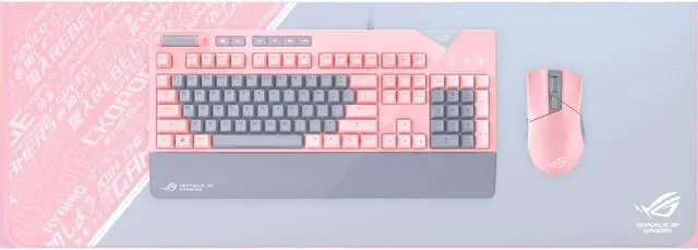 Were giving a big shout out to all the Pinkaholics out there with a new limited edition with unlimited charm. The ROG PNK LTD is a brand-new peripheral series that lets you boldly express your gaming lifestyle and equips you with the best weapons to win on the battlefield. This new series delivers the ultimate gaming experience with pink versions of the ROG Strix Fusion 300 gaming headset, our beloved ROG Gladius II Origin optical-sensor gaming mouse, Cherry MX mechanical ROG Strix Flare gaming keyboard, and ROG Sheath gaming mouse pad.